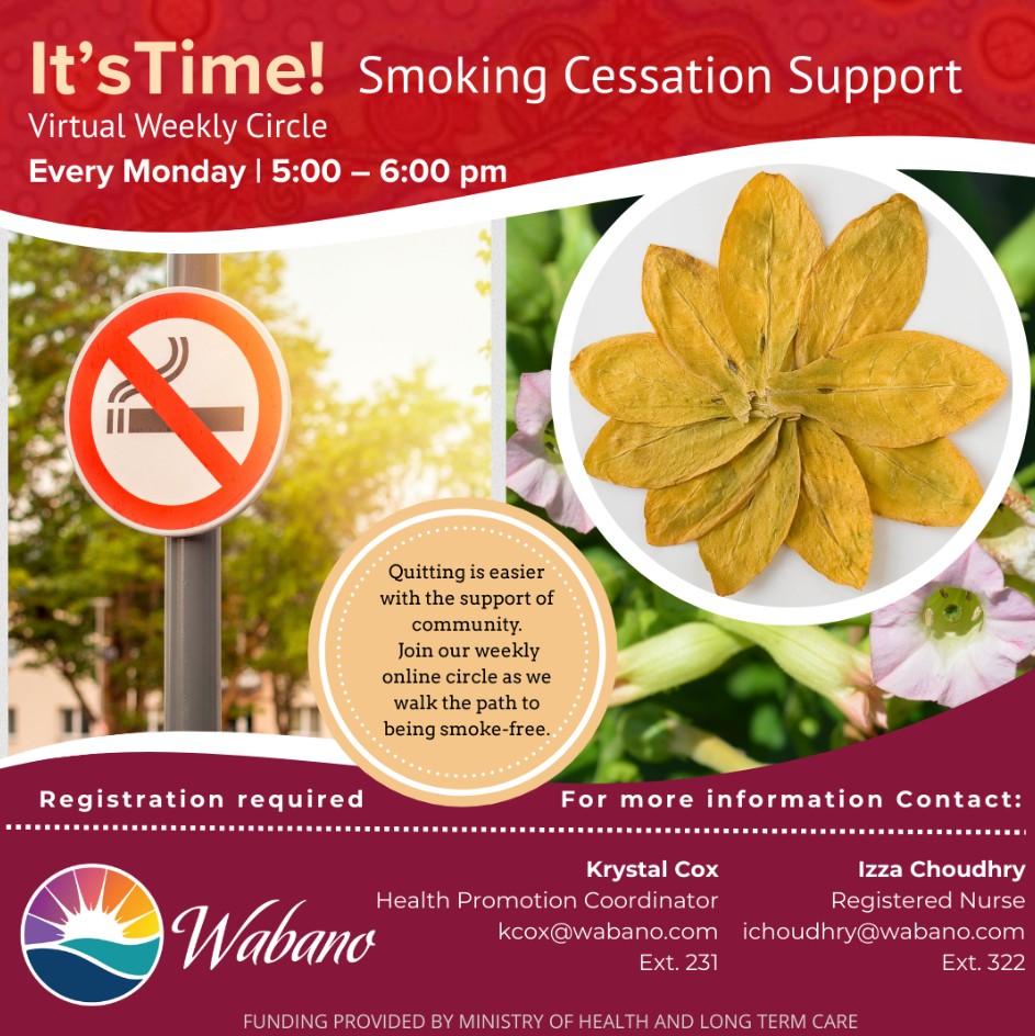 Our weekly virtual smoking cessation support circles provide a safe and understanding environment for community members navigating their relationship with Tobacco. We recognize tobacco's sacred role as a Medicine. We provide support to reduce and/or eliminate commercial tobacco use. We offer a supportive space to explore tools, strategies, and education to help make informed choices... |