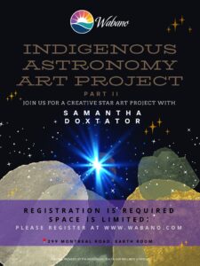 Join us for an evening with Samantha Doxtator as we explore and create a star art piece together. Space is limited for this session. Light refreshments provided.